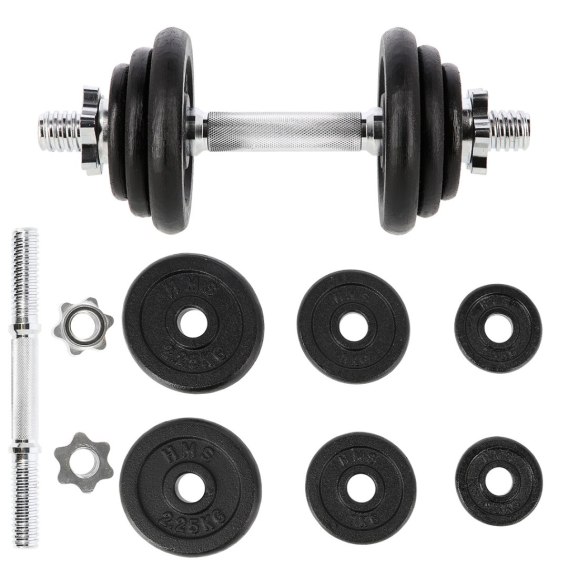 SG03 HMS - hantla żeliwna, czyli klasyka, a zarazem niezbędnik każdej domowej siłowni. W skład zestawu wchodzą: gryf prosty 2kg, 2 talerze 0,5 kg, 2 talerze 1 kg, 2 talerze 2,25 kg oraz 2 zaciski gwiazdowe 0,25 kg. Pierwszy z elementów został wykonany ze stali niklowanej. Z kolei talerze są żeliwne. Gryf posiada ryflowany uchwyt, dzięki czemu nie wyślizguję się w trakcie ćwiczeń. Gwintowane sztangielki w połączeniu z zaciskami gwarantują równomierny docisk ciężarów. Produkt jest odpowiedni zarówno dla zaawansowanych jak i początkujących użytkowników. Już dziś zacznij dbać o swoją kondycję, z profesjonalną sztangielką o obciążeniu 10 kg. To idealna propozycja zarówno do domu jak i do siłowni.
