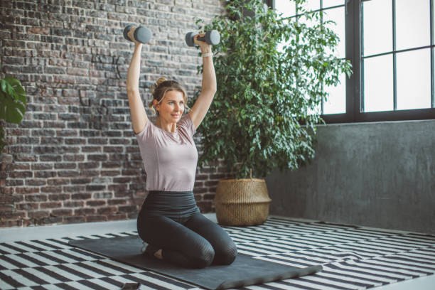 Wybieraj umiarkowane obciążenia — hantle 2–5 kg, gumy, piłki.