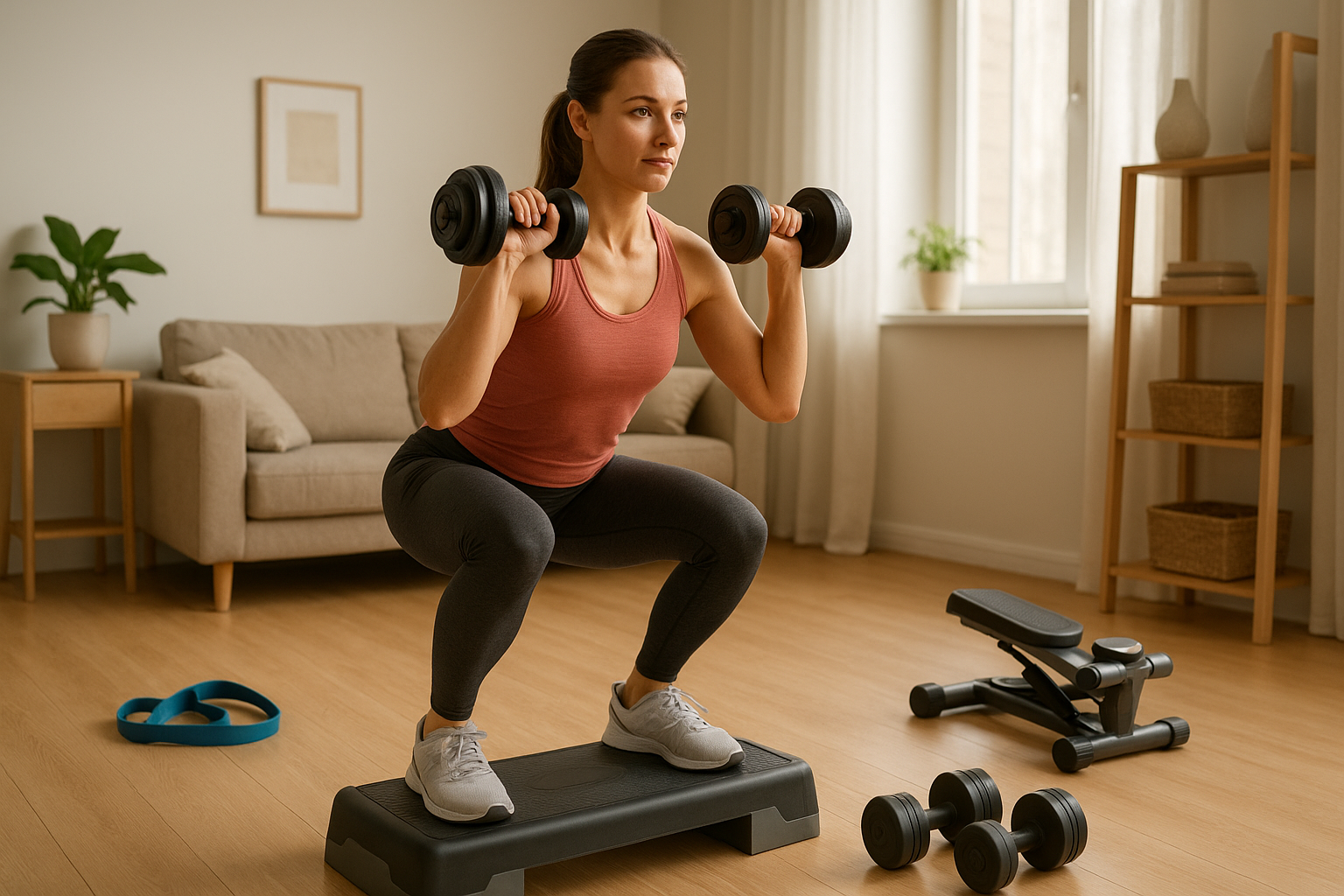 🔹 Alternatywa: Jeśli nie masz steppera, wykorzystaj stopień schodów lub podest w domu.